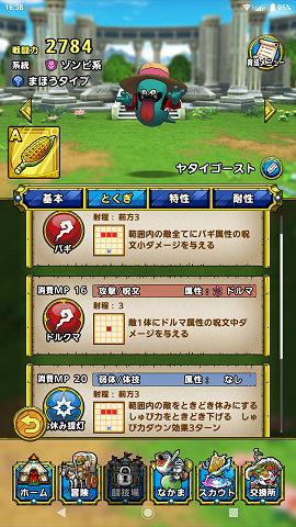 他にバギとドルクマを覚えるので、秘伝書でもう1属性覚えさせれば妨害+呪文アタッカーとしてそこそこ活躍できそう。