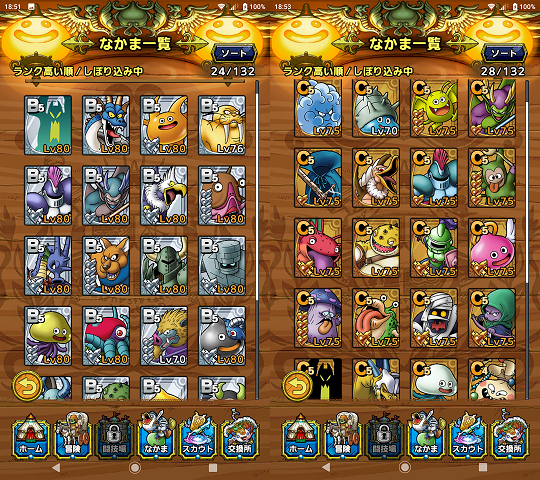 Bランクは24体保持しているうち、20体までB5ランクアップ完了。