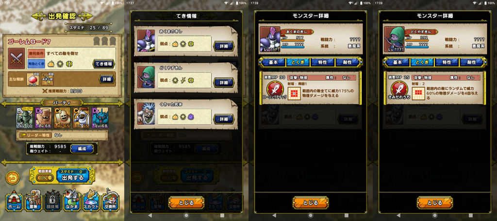 バトルロードの「ゴーレムロード」Lv7クリア時のステータスを公開します。
