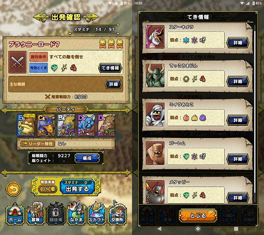 バトルロードの「ブラウニーロード」Lv7クリア時のステータスを公開します。
